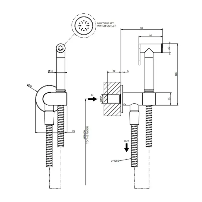 Gessi Гигиенический душ, с выпуском-держателем и шлангом 1.25 м цвет: brass PVD 14331#710