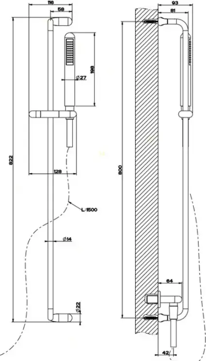 Gessi Goccia Душевой гарнитур: ручной душ, штанга 82,2 см, шланг 150 см, цвет: matte white 33645#279