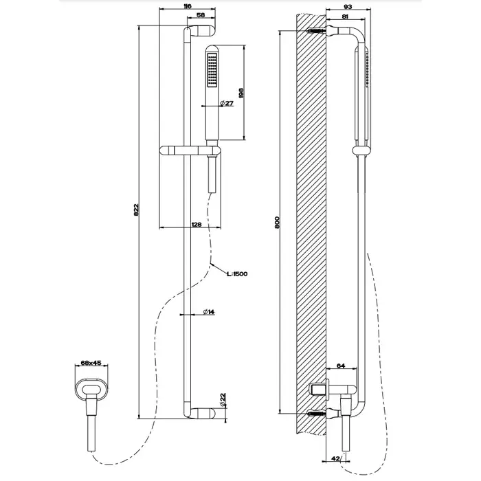 Gessi Goccia Душевой гарнитур: ручной душ, штанга 82,2 см, шланг 150 см, цвет: chrome brushed 33642#147