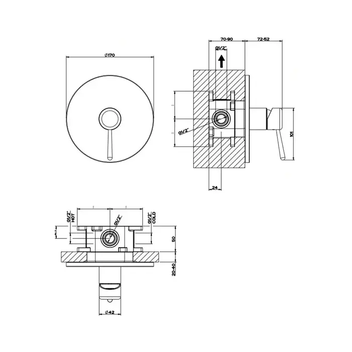 Gessi Goccia Смеситель для душа встраиваемый на 1 потребителя, внешняя часть, цвет: matte black 44676#299
