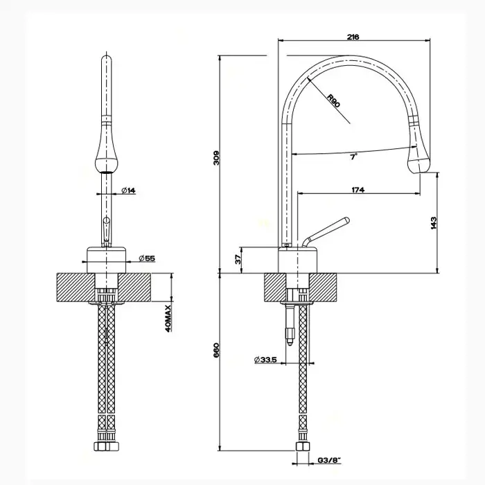 Gessi Goccia Смеситель для раковины на 1 отверстие, излив 17,4 cм, R=90, цвет хром 33601#031