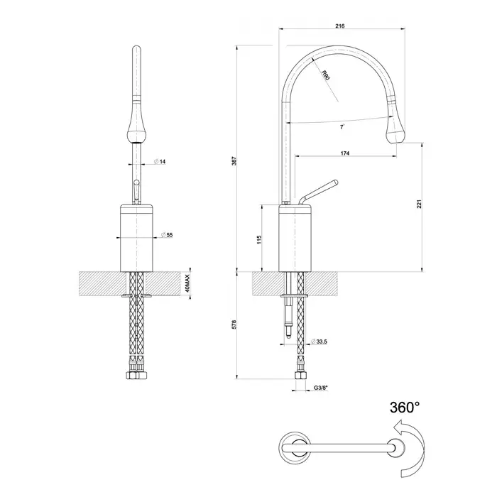 Gessi Goccia Смеситель для раковины на 1 отверстие, излив 17,4 cм, R=90, цвет черный 33604#299