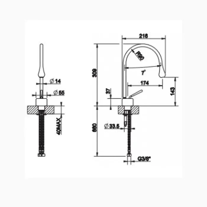 Gessi Goccia Смеситель для раковины на 1 отверстие, излив 17,4 cм, R=90, цвет хром 33802#031