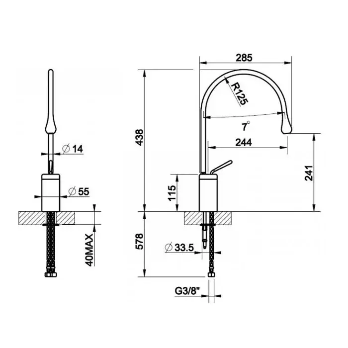 Gessi Goccia Смеситель для раковины на 1 отверстие, излив 24,4 cм, R=125, цвет черный 33605#299