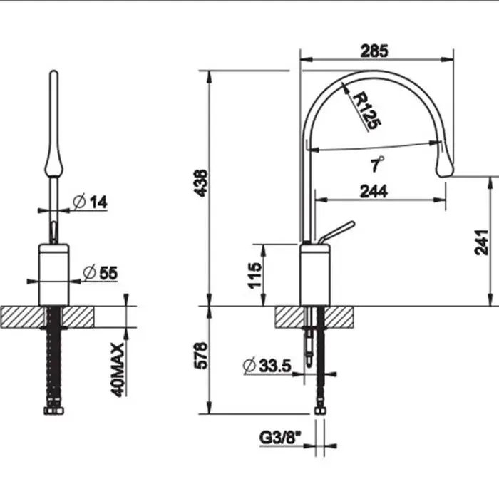 Gessi Goccia Смеситель для раковины на 1 отверстие, излив 24,4 cм, R=125, цвет хром 33806#031