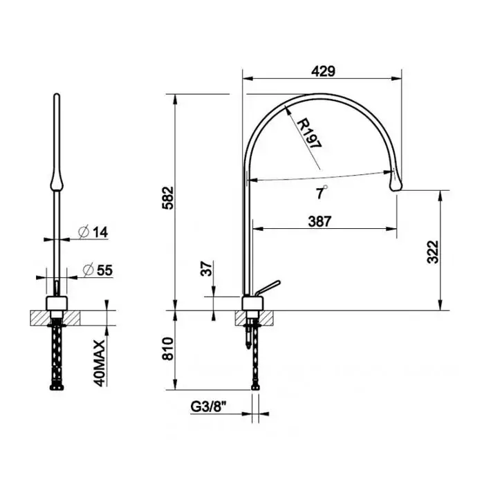 Gessi Goccia Смеситель для раковины на 1 отверстие, излив 38,7 cм, R=197, цвет черный 33603#299