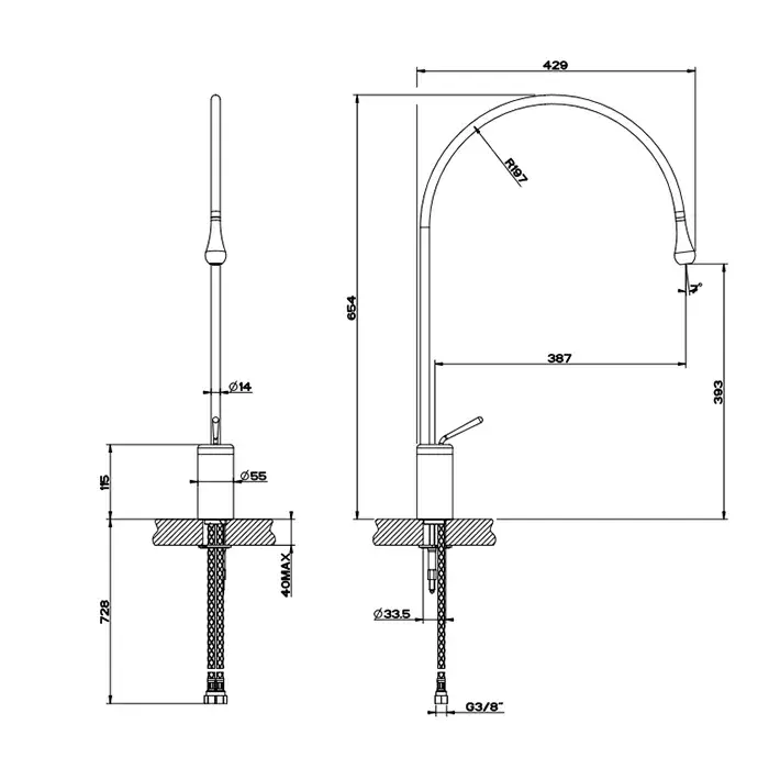 Gessi Goccia Смеситель для раковины на 1 отверстие, излив 38,7 см, цвет: Black Metal GHRC 33808#124