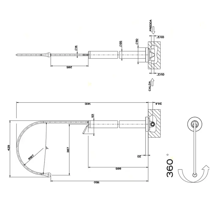 Длина излива, см
