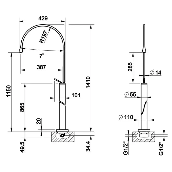 Gessi Goccia Смеситель для раковины напольный, высота излива 115 см, цвет: chrome brushed 33628#147