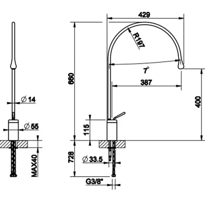Высота излива, см