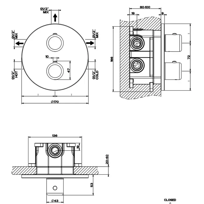 Gessi Goccia Термостат для душа встраиваемый, 3 потребителя, запорный вентиль, цвет: matte black 33846#299