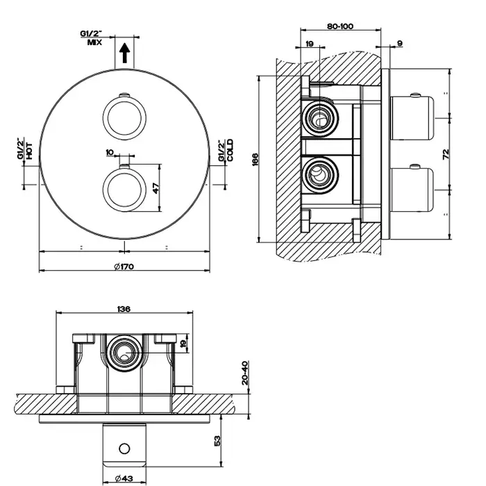 Gessi Goccia Термостат для душа встраиваемый, запорный вентиль, внешняя часть, цвет: matte white 33842#279