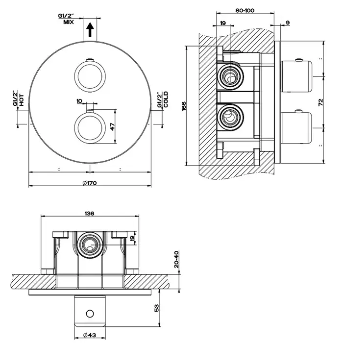 Смеситель для душа встраиваемый