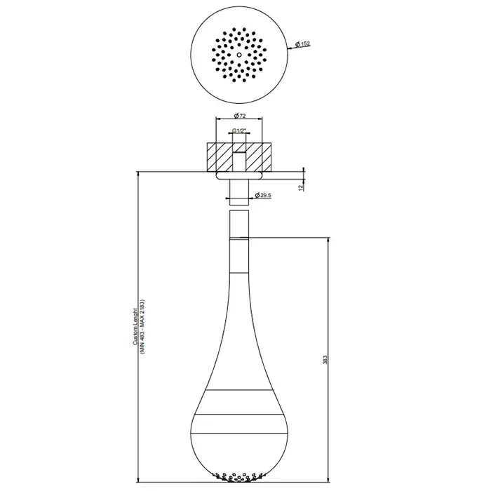 Gessi Goccia Верхний душ 15,2 см 1 вид струи каплевидной формы, высота под заказ, цвет: matte black 33753#299