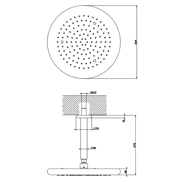 Размер верхнего душа, см