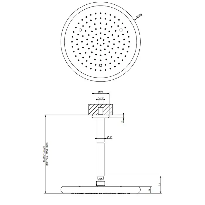 Gessi Goccia Верхний душ 33,4 см 1 вид струи, кронштейн потолочный под заказ, цвет: matte white 33768#279