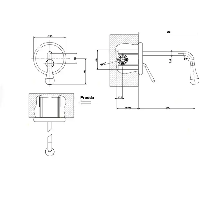 Gessi Goccia Внутренняя часть встраиваемого смесителя для раковины с изливом 33687#031