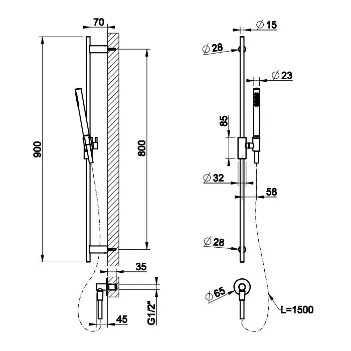 Gessi Habito Душевой гарнитур: ручной душ 1 вид струи, держатель, шланг 150 см, цвет: chrome 70142#031