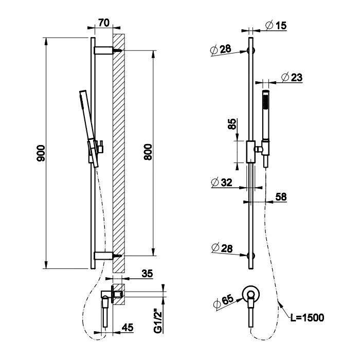 Gessi Habito Душевой гарнитур: ручной душ 1 вид струи, держатель, шланг 150 см, цвет: chrome 70442#031