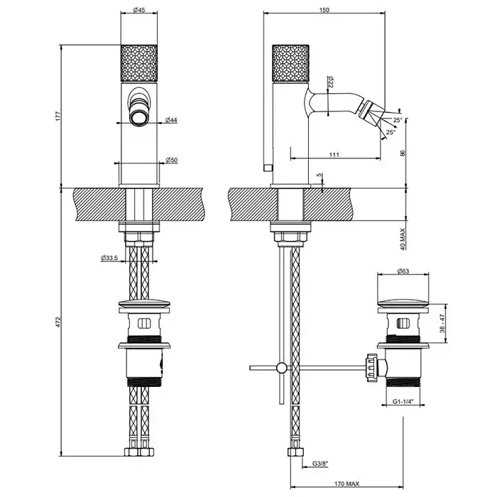 Gessi Habito Смеситель для биде, с донным клапаном, длина излива 11,1 см, цвет: black metal PVD 70107#706