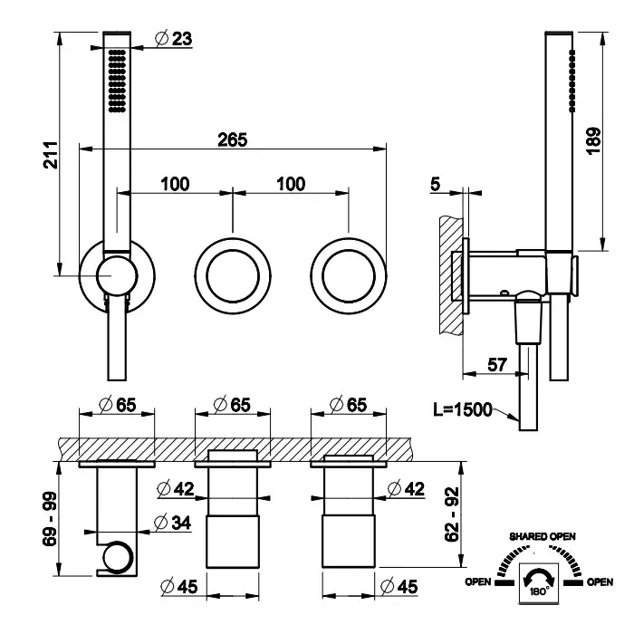 Gessi Habito Смеситель для душа встр., внешняя часть, с ручным душем, цвет: black metal brushed PVD 70338#707