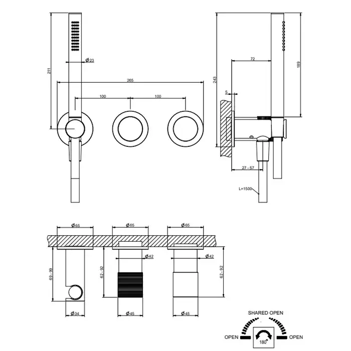 Gessi Habito Смеситель для душа встраиваемый, внешняя часть, с ручным душем, цвет: chrome 70338#031