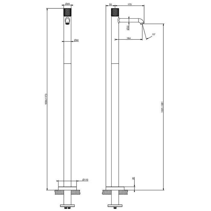 Gessi Habito Смеситель для раковины напольный, высота излива 108,1 см, цвет: black metal PVD 70195#706