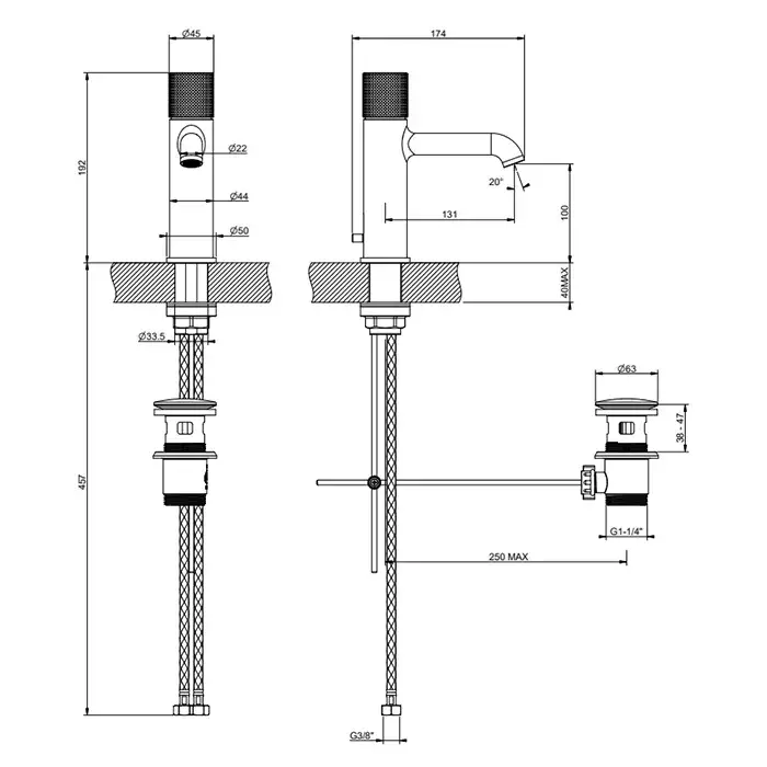 Gessi Habito Смеситель для раковины высокий, с д/к, высота излива 24,4 см, цвет: matte black 70403#299