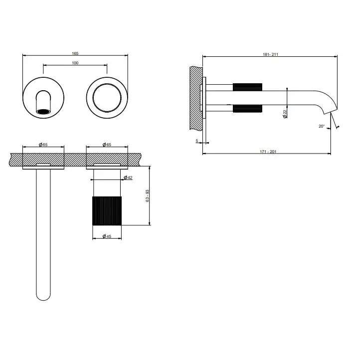Gessi Habito Смеситель для раковины встраиваемый, без вн. части, длина излива 20,1 см, цвет: chrome 70588#031