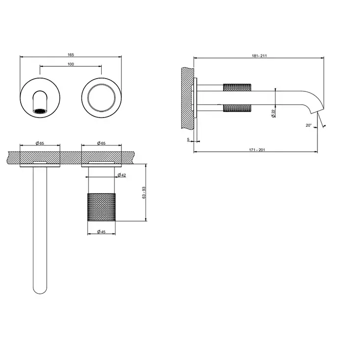 Gessi Habito Смеситель для раковины встраиваемый, без вн. части, длина излива 20,1 см, цвет: chrome 70488#031