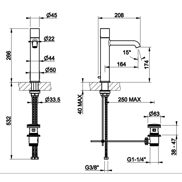 Высота излива, см