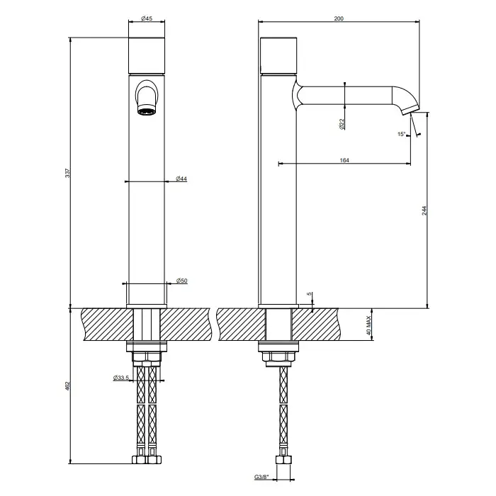 Gessi Habito Смеситель для раковины высокий, без д/к, высота излива 24,4 см, цвет: matte black 70004#299