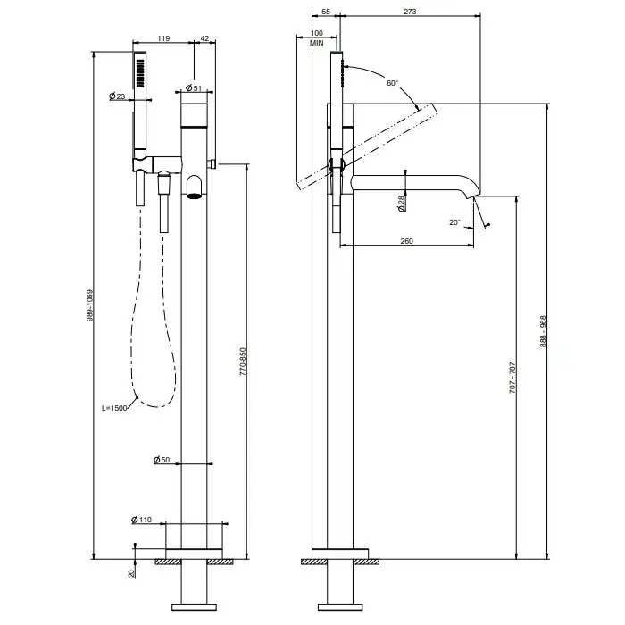 Смесители для ванны напольные