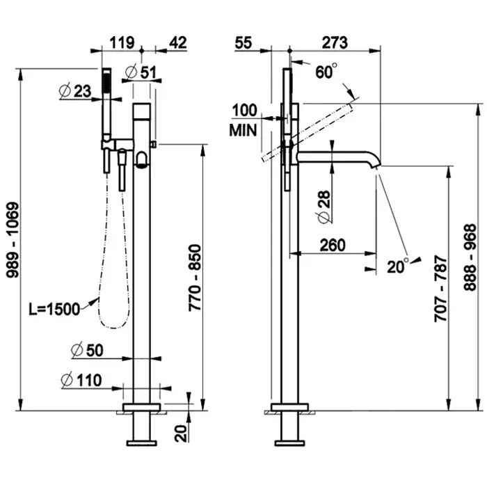 Gessi Habito Смеситель для раковины напольный, высота излива 108,1 см, цвет: chrome 70495#031
