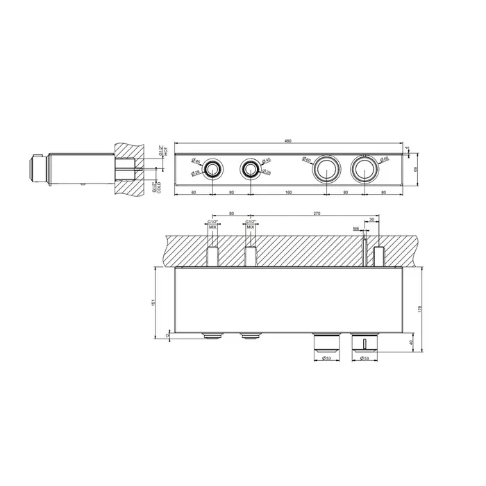 Gessi Hi-Fi Eclectic Смеситель для душа настенный встраиваемый, термостатический, цвет: brass PVD 65232#710