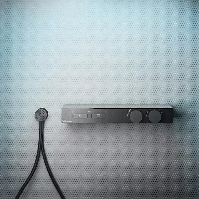 Gessi Hi-Fi Термостат для душа встраиваемый, 2 потребителя, запорный вентиль, цвет: matte black 63012#299