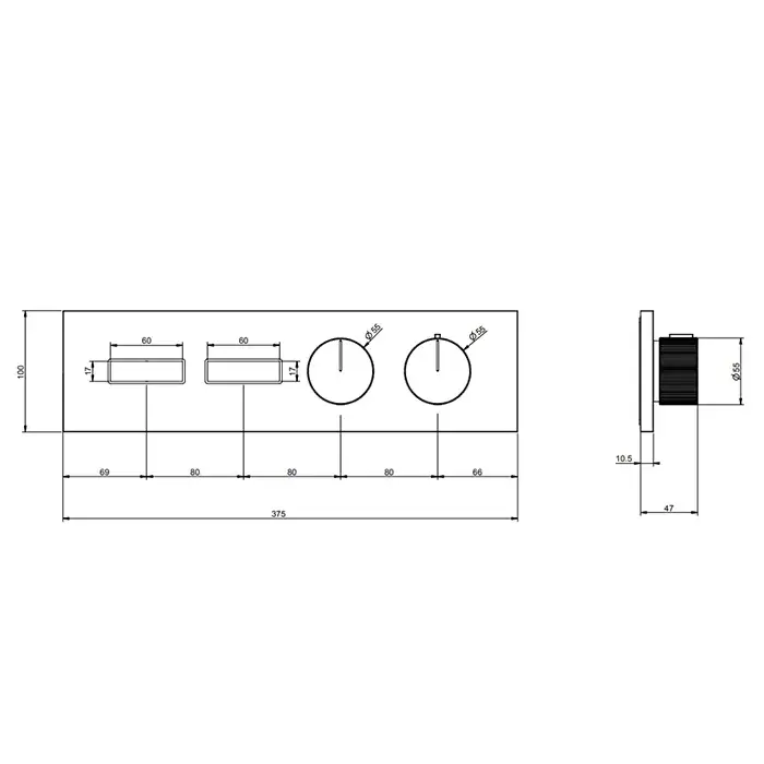 Gessi Hi-Fi Термостат для душа встраиваемый, 2 потребителя, запорный вентиль, цвет: matte black 63012#299