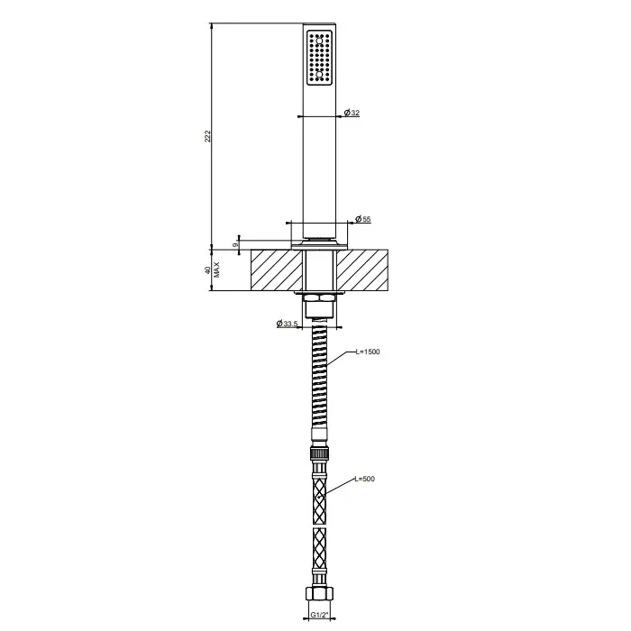 Gessi Inciso Душевой гарнитур на борт ванны: ручной душ, шланг 150 см, цвет: chrome 58137#031