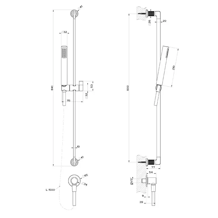 Gessi Inciso Душевой гарнитур: ручной душ, штанга 84,1 см, шланг 150 см, цвет: finox brushed nickel 58142#149