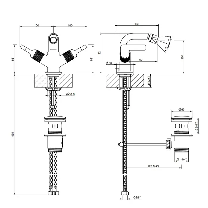 Gessi Inciso Смеситель для биде, двухвентильный, с донным клапаном, цвет: gold PVD 58027#246