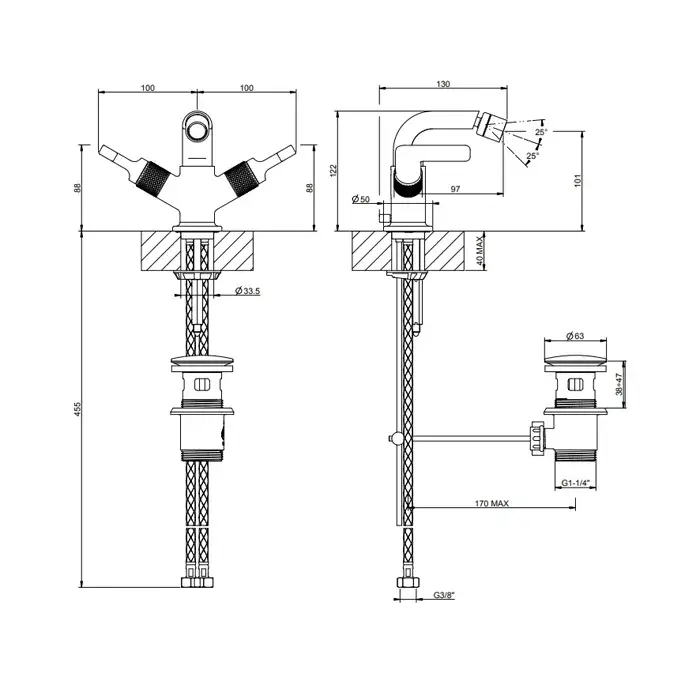 Gessi Inciso Смеситель для биде, двухвентильный, с донным клапаном, цвет: matte black 58027#299
