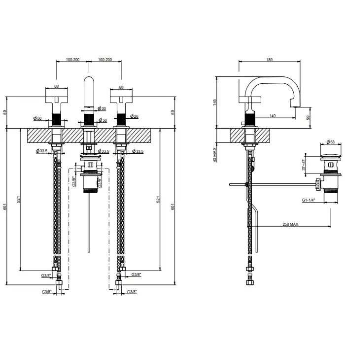 Gessi Inciso Смеситель для раковины на 3 отверстия, излив 14 cм, цвет: black metal brushed PVD 58112#707