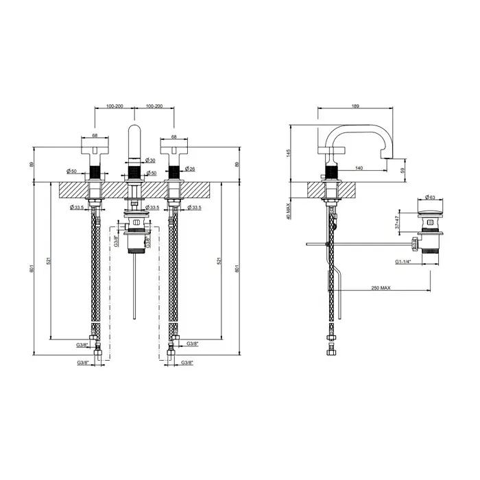 Gessi Inciso Смеситель для раковины на 3 отверстия излив 14 cм, h14,5 cм, цвет nero XL 58111#299