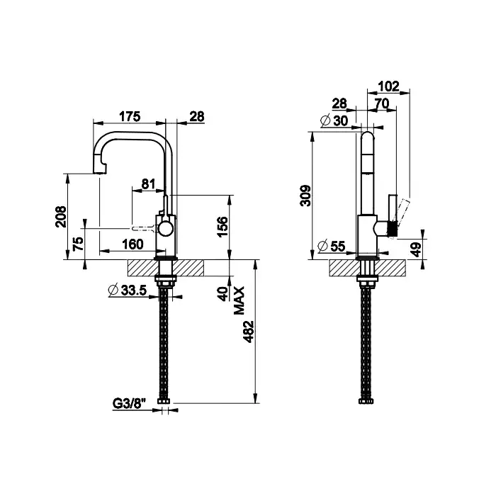 Высота излива, см