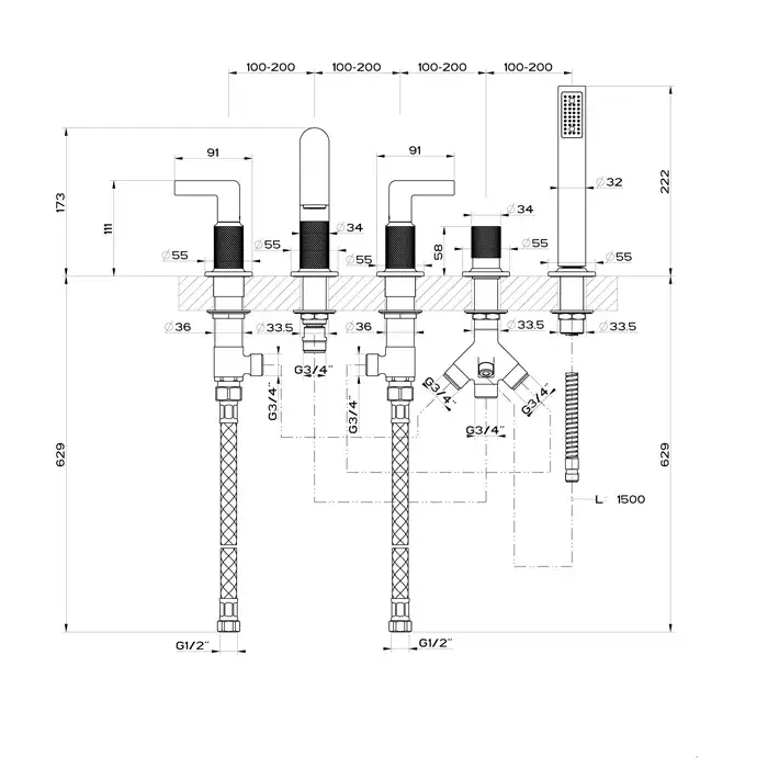 Gessi Inciso Смеситель на борт ванны на 5 отверстий, с ручн. душем, цвет: matte black 58040#299