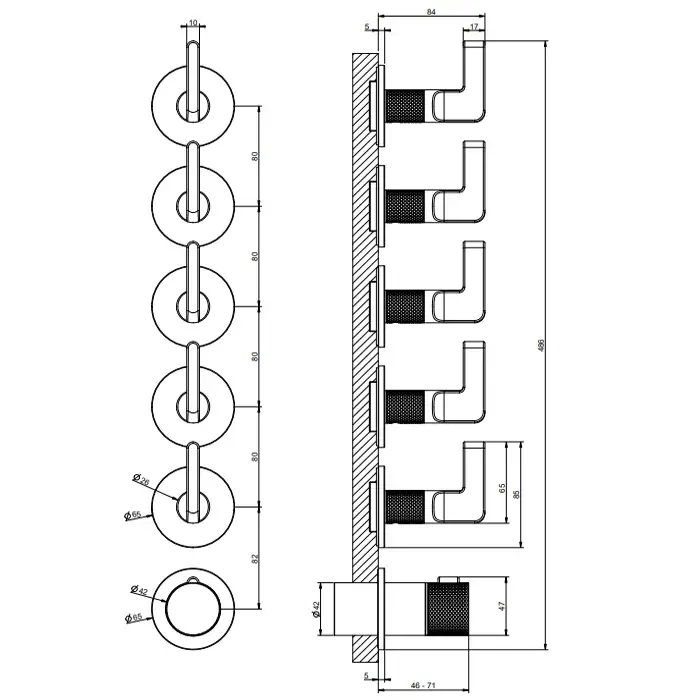 Gessi Inciso Термостат для ванны встраиваемый, 5 потребителей, цвет: black metal brushed PVD 58340#707