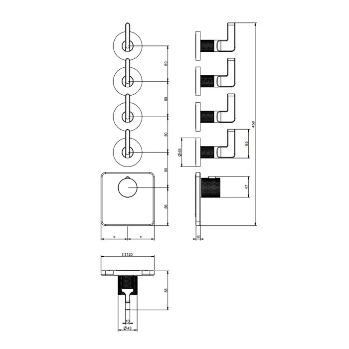 Gessi Inciso Термостат для ванны встраиваемый на 4 потребителя, внешняя часть, цвет: matte black 58218#299
