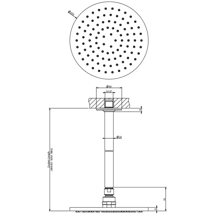 Размер верхнего душа, см