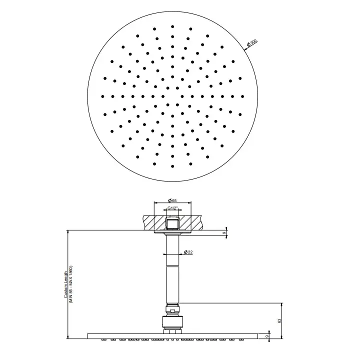 Размер верхнего душа, см