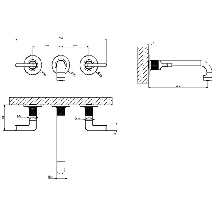 Gessi Inciso Смеситель для раковины на 3 отверстия, излив 14 cм, цвет: black metal brushed PVD 58112#707